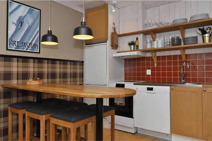 TV, vaskemaskine, tørreskab, skiopbevaring, adgang til parkeringsplads samt oplader til elbiler mod gebyr, forudbestil på www.arefjallby.com.