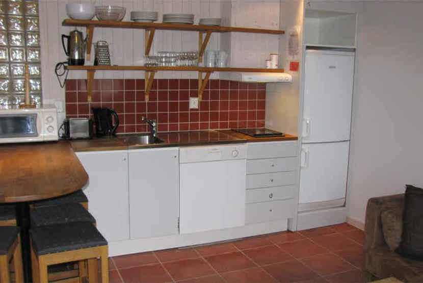 Stue med køkkenafdeling.