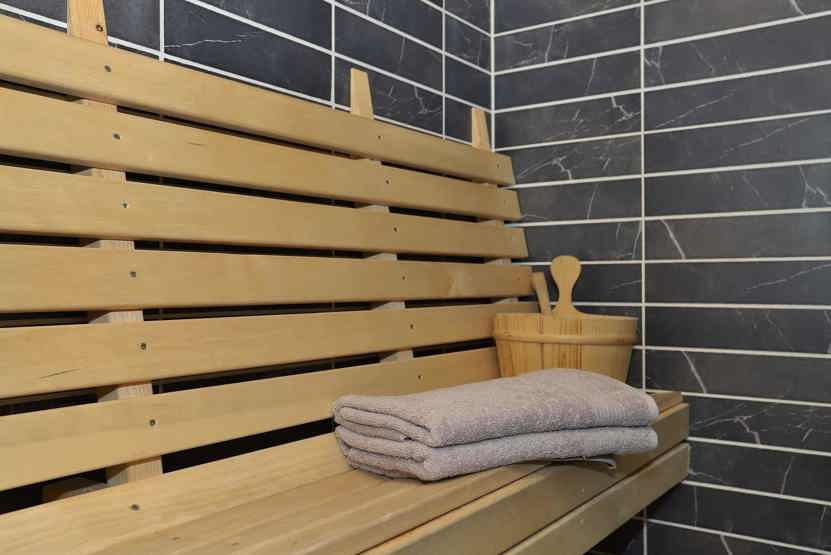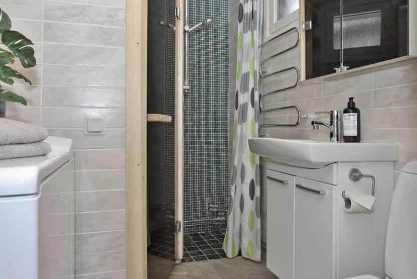 Badeværelse 1 = bruser/WC/sauna, (lille sauna, passende for 2 personer).