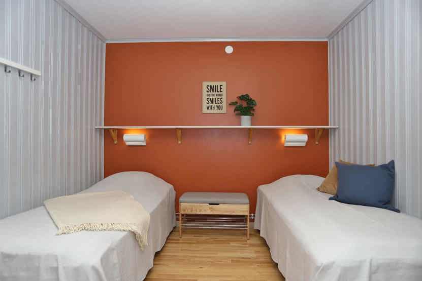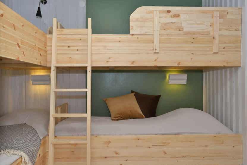Soveværelse-1 = 2 enkeltsenge. Soveværelse-2 = 1 køjeseng hvor både over og underkøje er 80 cm bred, 1 køjeseng hvor både over og underkøje er 90 cm bred.