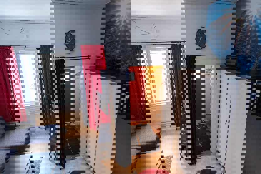 Stue med køkkenafdeling, 1 sovesofa.