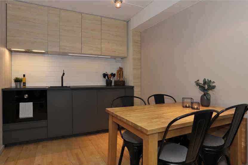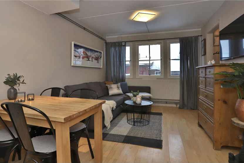 Stue med køkkenafdeling.