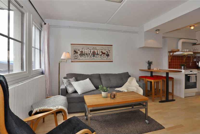 Stue med køkkenafdeling, sovesofa til 2 personer.