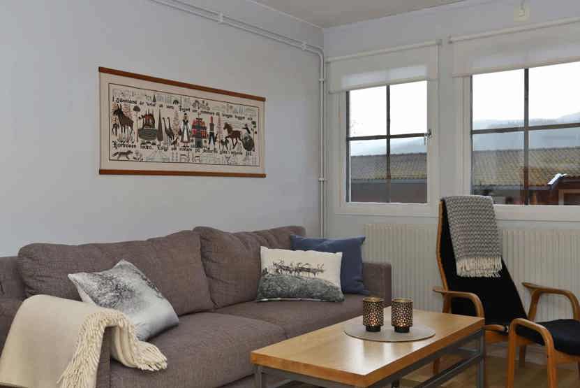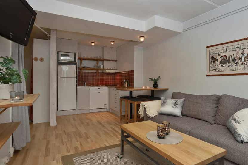 Stue med køkkenafdeling, sovesofa til 2 personer.
