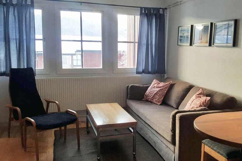 Stue med køkkenafdeling, sovesofa til 2 personer.
