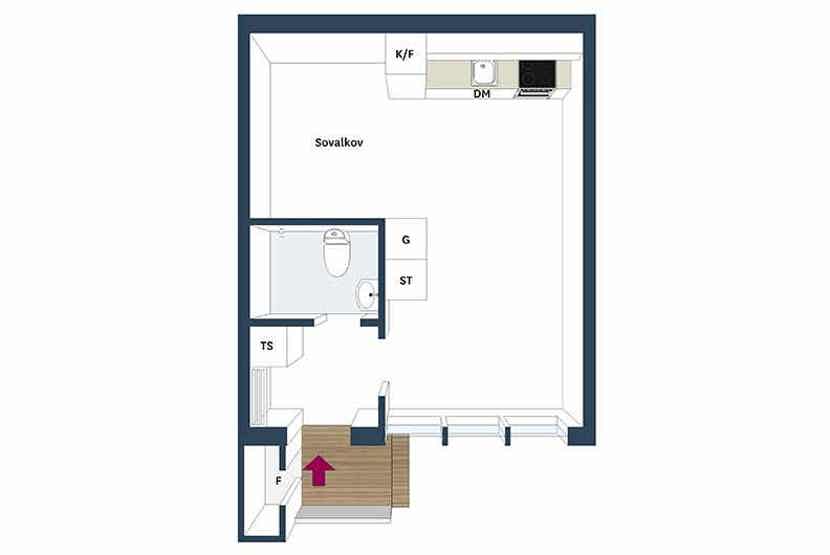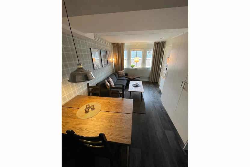 Stue med køkkenafdeling, sovesofa til 2 personer.