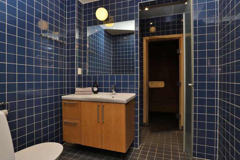 Badeværelse 1 = bruser/WC/sauna. Badeværelse 2 = bruser/WC.