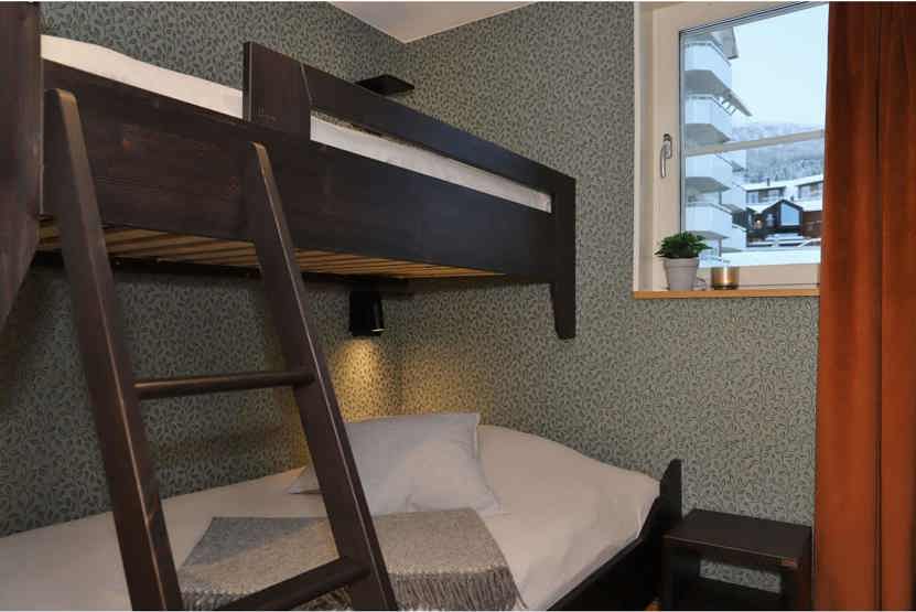 Soveværelse-1 = 2 enkeltsenge. Soveværelse-2 = 2 enkeltsenge. Soveværelse-3 = 1 køjeseng med 120 cm bred underkøje. Soveværelse-4 = 1 køjeseng med 120 cm bred underkøje.