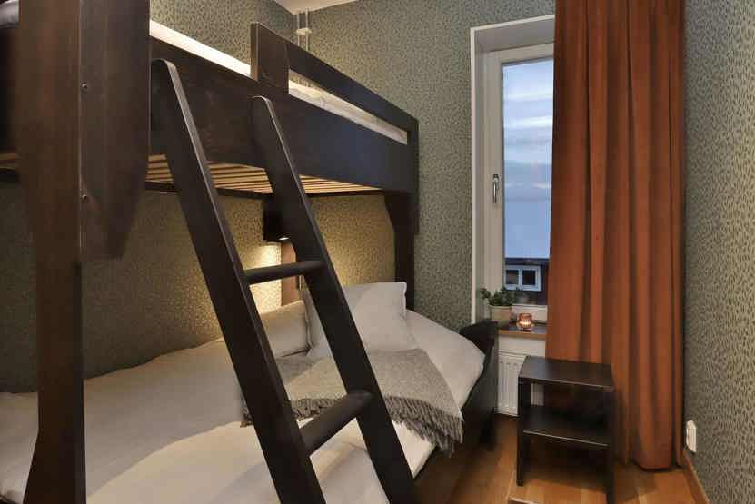 Soveværelse-1 = 2 enkeltsenge. Soveværelse-2 = 1 køjeseng med 120 cm bred underkøje. Soveværelse-3 = 1 køjeseng med 105 cm bred underkøje.
