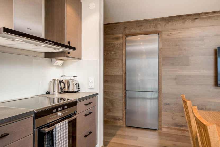 TV, to tørreskabe ideelt til skitøj og skistøvler, vaskemaskine, strygejern og strygebræt, hårtørrer, balkon med havemøbler, skiopbevaring, elevator findes i huset, 1 parkeringsplads med motorvarmere, adgang til fælles elbilopladere med type 2 stik mod betaling, Ved booking af minimum 7 døgn indgår også en enkel rengøring under opholdet.