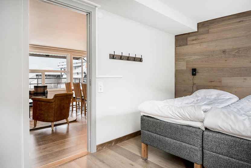 Soveværelse-1 = 1 dobbeltseng. Soveværelse-2 = 1 dobbeltseng. Soveværelse-3 = 1 dobbeltseng, 1 køjeseng i et sengeskab.