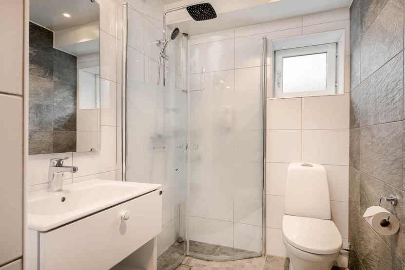 Badeværelse 1 = bruser/WC/sauna. Badeværelse 2 = bruser/WC.