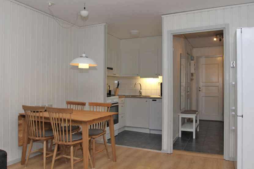 Stue med køkkenafdeling. TV, tørreskab, altan, skiopbevaring, 1 parkering afhænger af tilgængelighed.