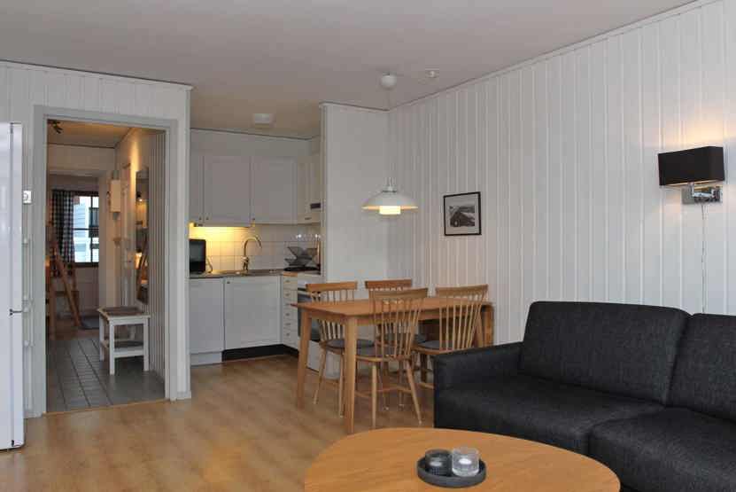Stue med køkkenafdeling.