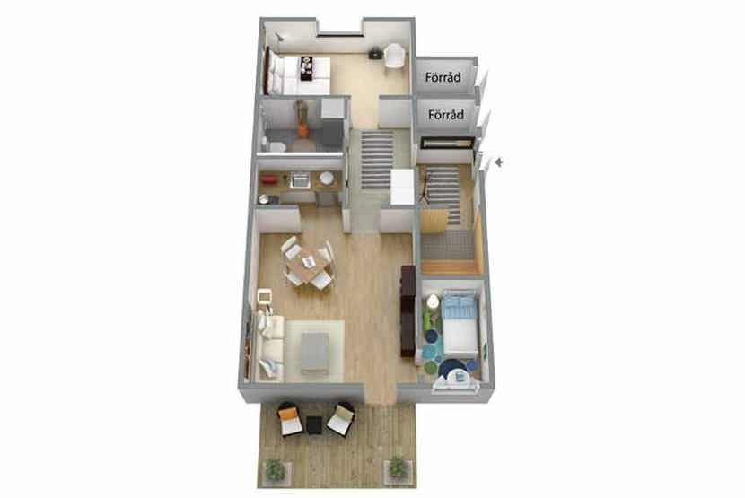 Stue med køkkenafdeling.
