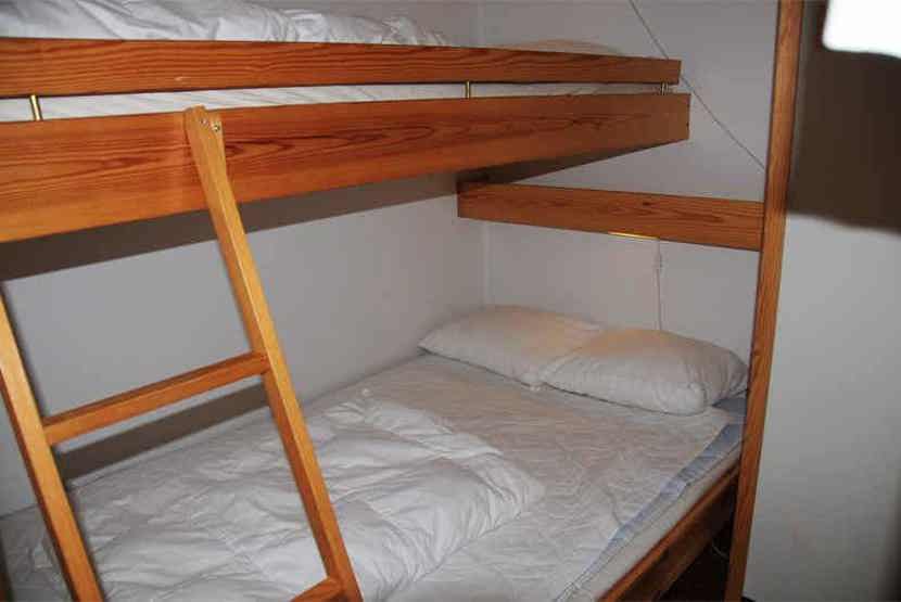 Soveværelse-1 = 1 køjeseng med 105 cm bred underkøje og 80 cm bred overkøje. Soveværelse-2 = 1 køjeseng med 105 cm bred underkøje og 80 cm bred overkøje.