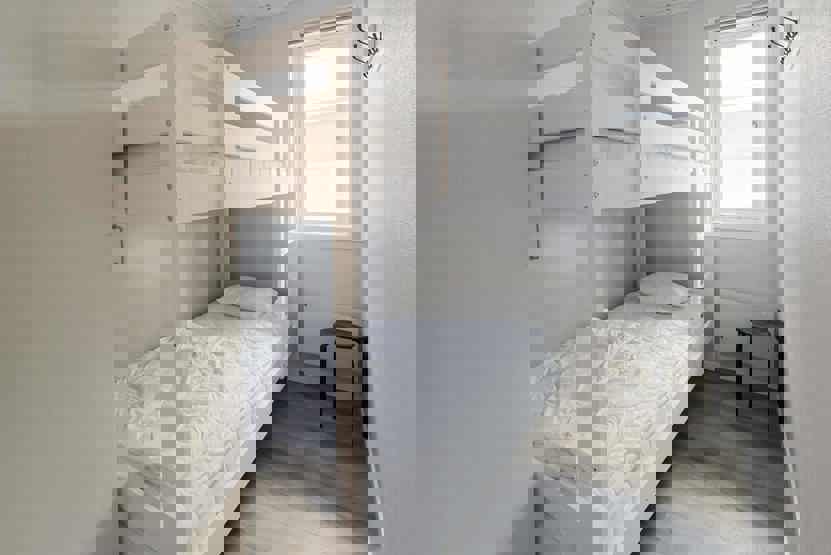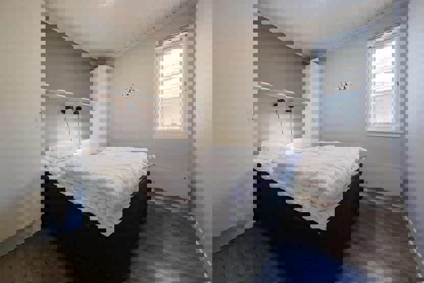 Soveværelse-1 = 1 dobbeltseng. Soveværelse-2 = 1 køjeseng hvor både over og underkøje er 90 cm bred. Soveværelse-3 = 1 enkeltseng samt en pullmanseng.