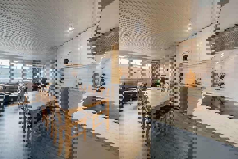 Køkkenet indeholder elkomfur med ovn, køleskab med fryser, opvaskemaskine, mikro.