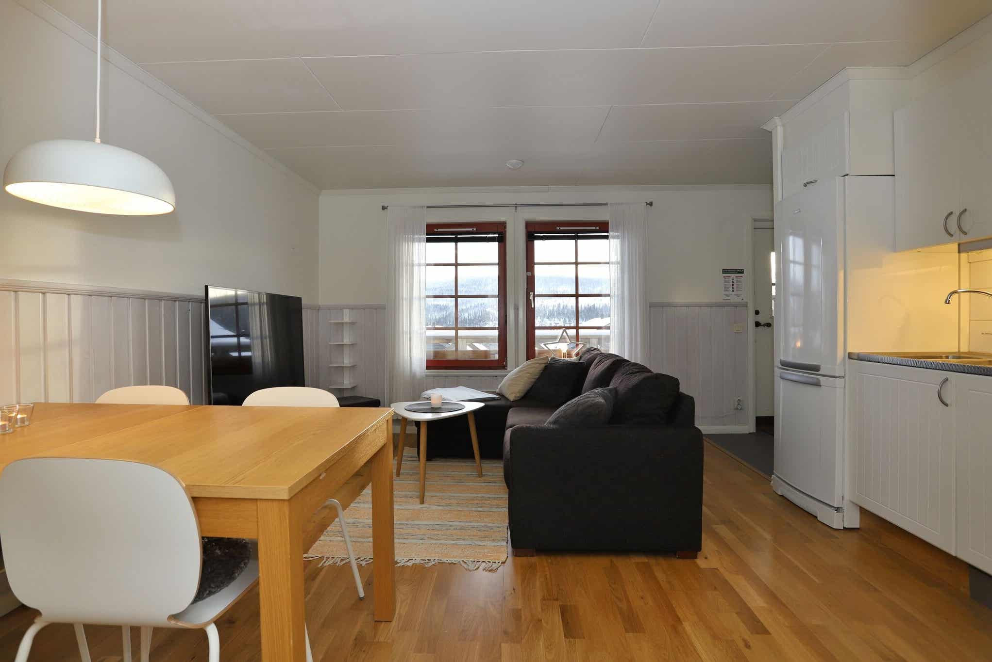 Her bor du fjeldmæssigt på kanten af bjerget i glideafstand til pisterne i familievenlige lejligheder med veludstyret køkken og sauna. Nogle lejligheder har balkon/altan og åben pejs. Skibussen stopper lige i nærheden. SkiStarshop og restaurant findes lige om hjørnet.