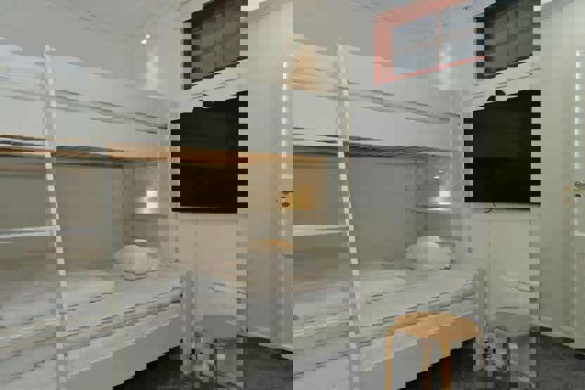 Soveværelse-1 = 1 dobbeltseng 160 cm bred. Soveværelse-2 = 1 køyeseng med 120 cm bred underkøye og 90 cm bred overkøye.