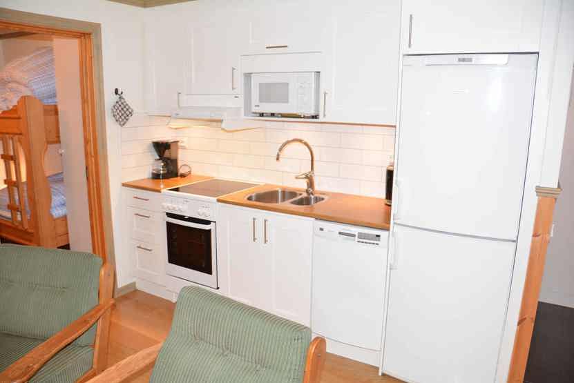 Køkkenet indeholder elkomfur med ovn, køleskab med fryser, opvaskemaskine, mikro.