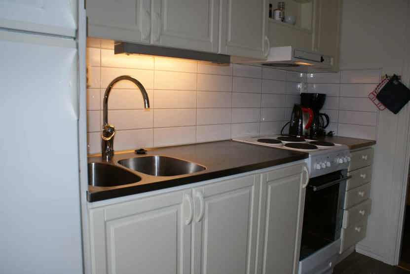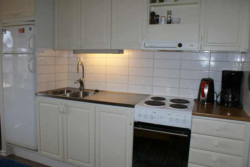Køkkenet indeholder elkomfur med ovn, køleskab med fryser, mikro.