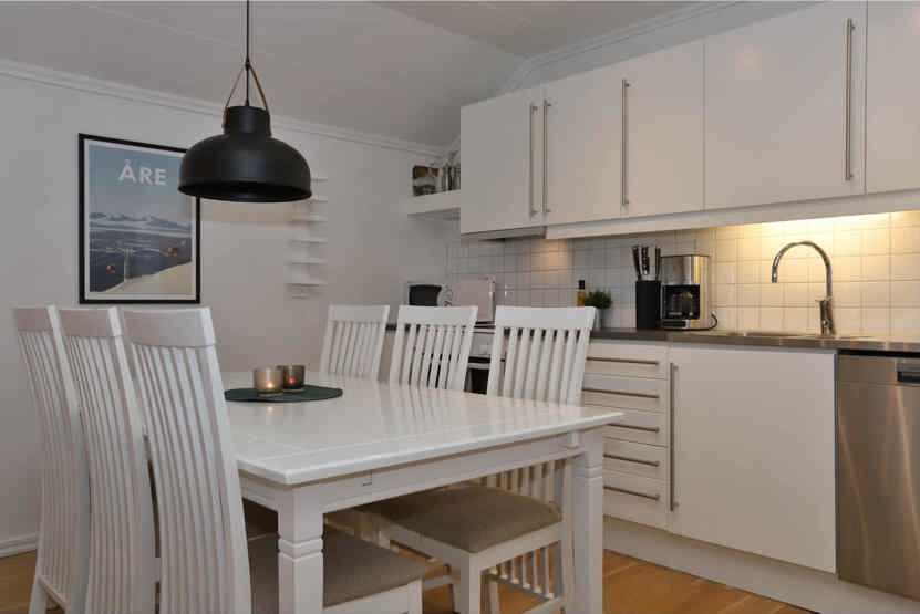 Køkkenet indeholder elkomfur med ovn, køleskab med fryser, opvaskemaskine, mikro.