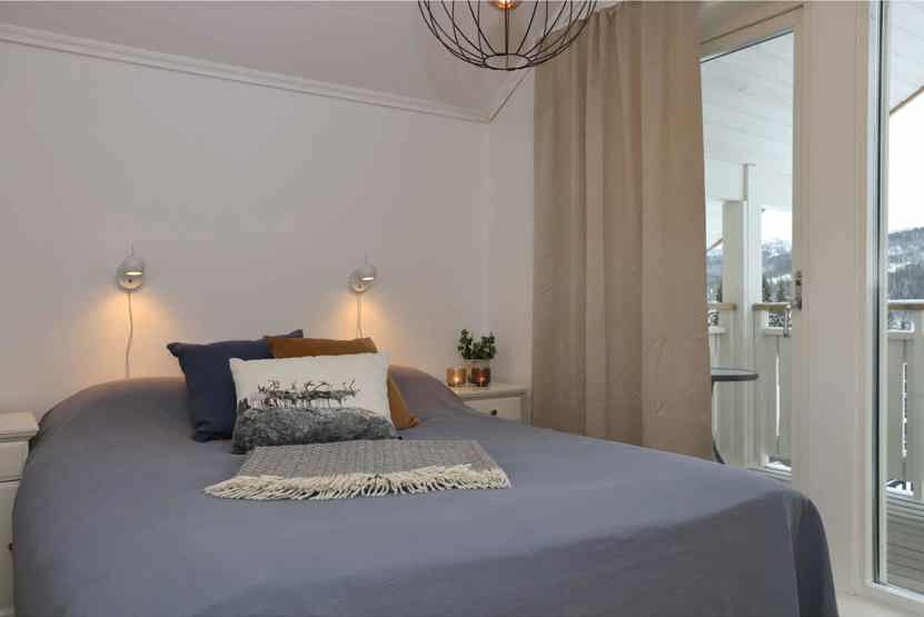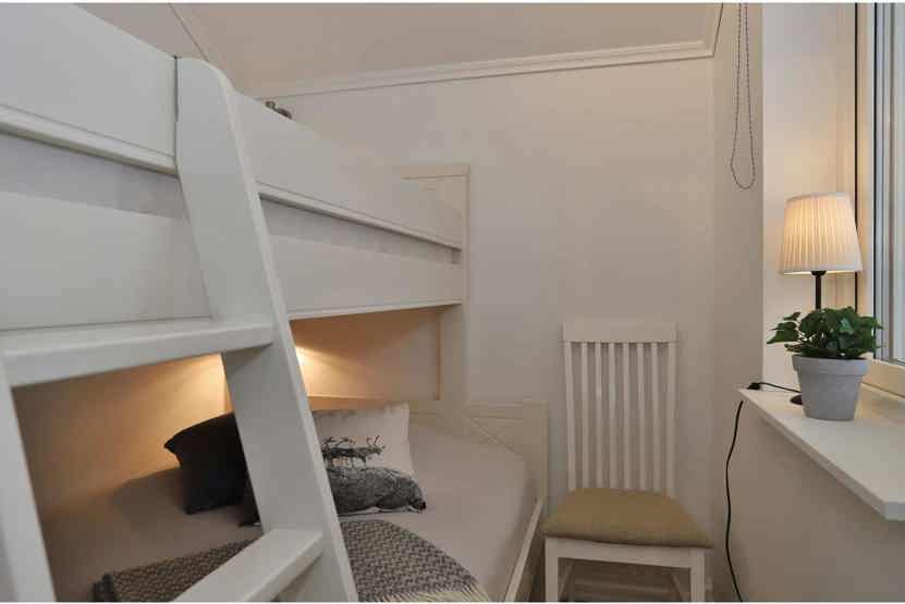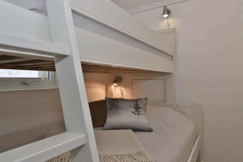 Soveværelse-1 = 1 dobbeltseng 150 cm bred. Soveværelse-2 = 1 køyeseng med 120 cm bred underkøye og 90 cm bred overkøye. Soveværelse-3 = 1 køyeseng med 120 cm bred underkøye og 90 cm bred overkøye.