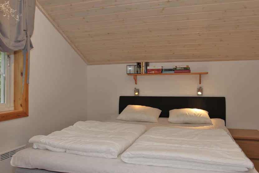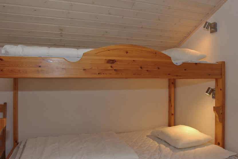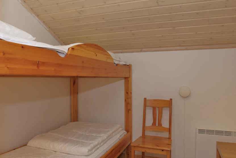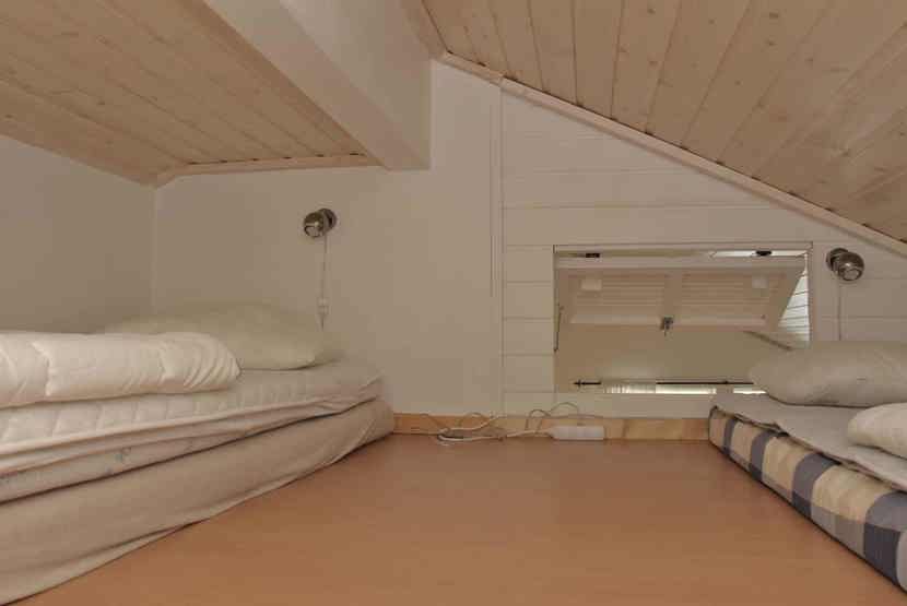 Soveværelse-1 = 1 dobbeltseng. Soveværelse-2 = 1 køjeseng med 115 cm bred underkøje. Soveværelse-3 = 1 køjeseng, soveværelse uden vinduer. Soveværelse-4 = Lille hems med to madrasser.