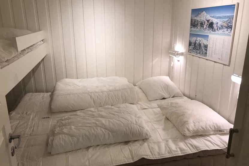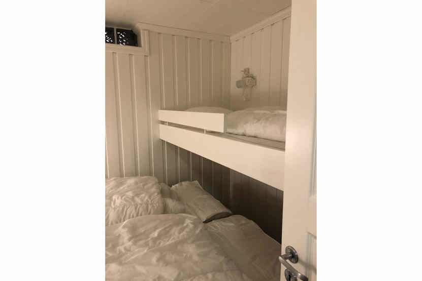 Soveværelse-1 = 1 køjeseng med 160 cm bred underkøje. Soveværelse-2 = 1 køjeseng.