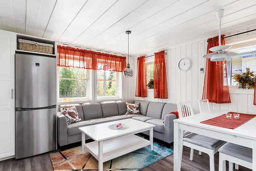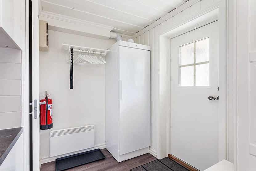 Stue med køkkenafdeling. TV, tørreskab, altan, motorvarmeudtag.