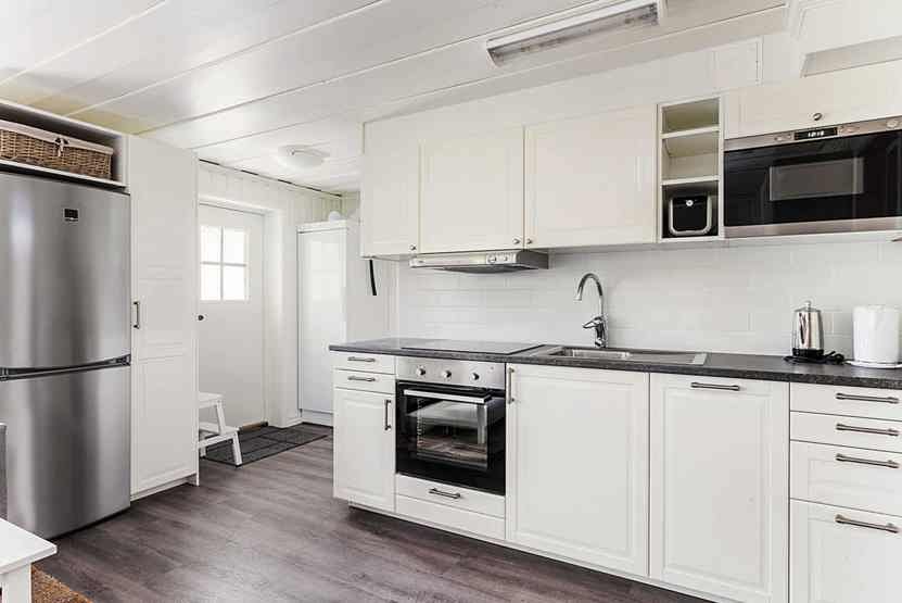 Køkkenet indeholder elkomfur med ovn, køleskab med fryser, opvaskemaskine, mikro.