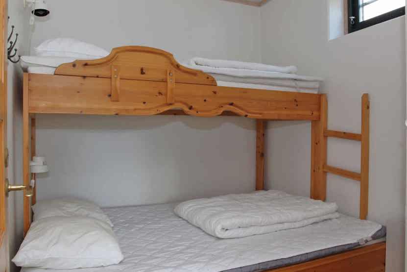 Soveværelse-1 = 1 køjeseng med 140 cm bred underkøje. Soveværelse-2 = 1 køjeseng.