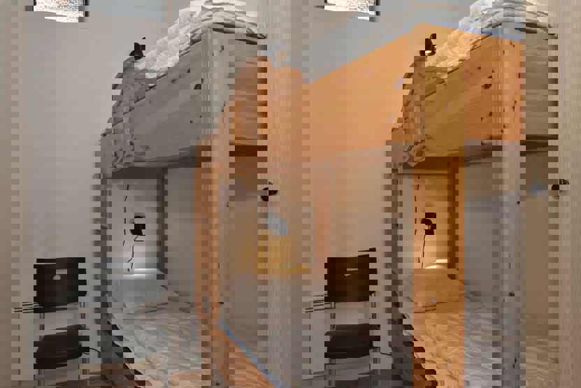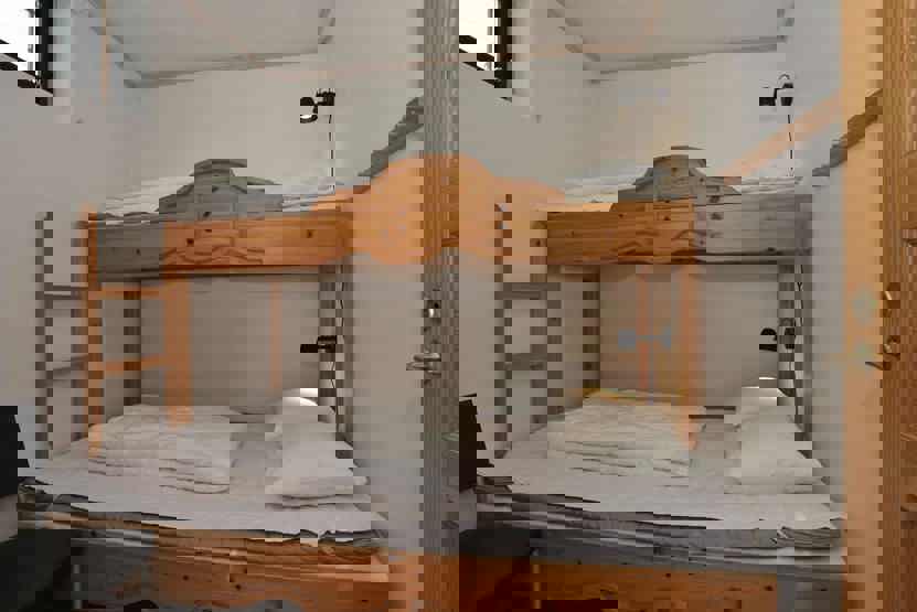 Soveværelse-1 = 1 køjeseng med 140 cm bred underkøje. Soveværelse-2 = 1 køjeseng.