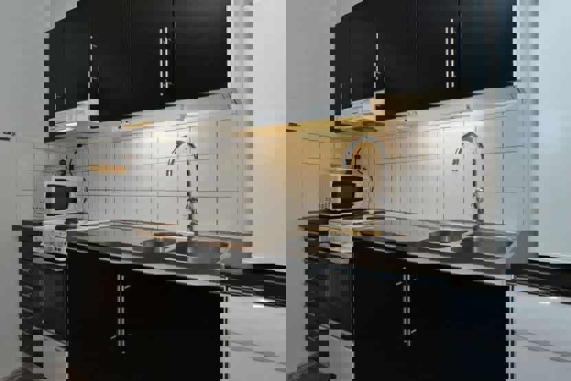 Køkkenet indeholder elkomfur med ovn, opvaskemaskine, mikro, køleskab med fryser.