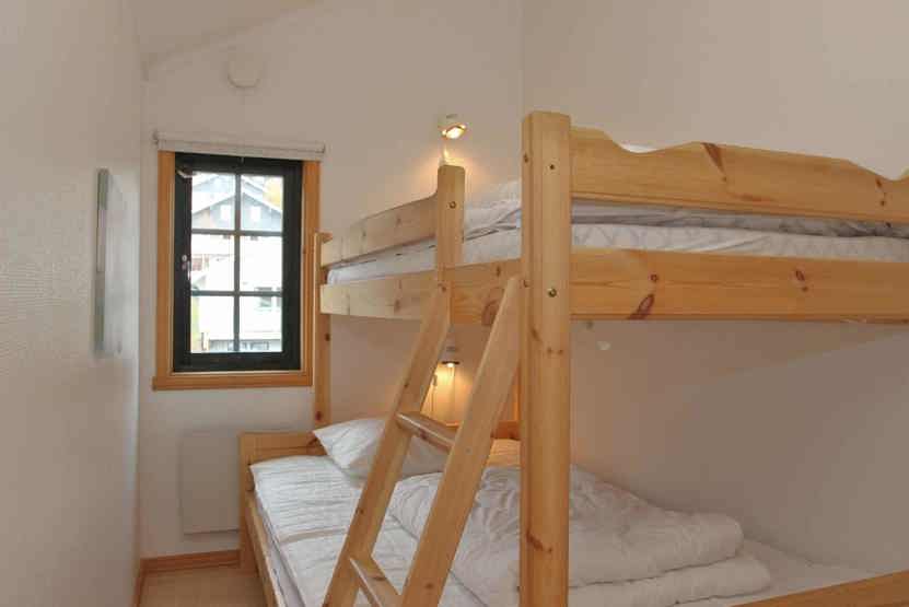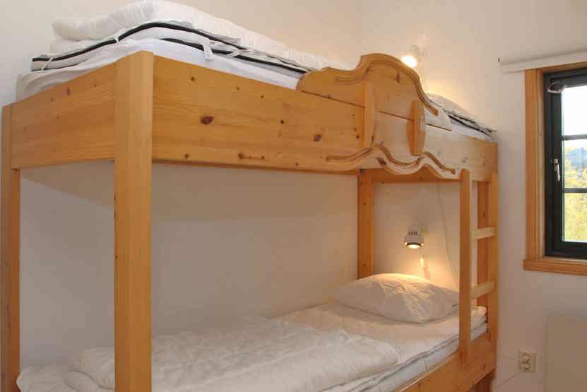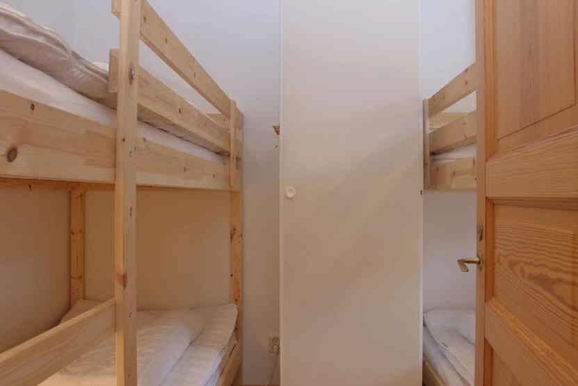 Soveværelse-1 = 2 køjesenge hvor både over og underkøje er 80 cm bred. Soveværelse-2 = 1 køyeseng med 120 cm bred underkøye og 90 cm bred overkøye. Soveværelse-3 = 1 køjeseng hvor både over og underkøje er 80 cm bred.