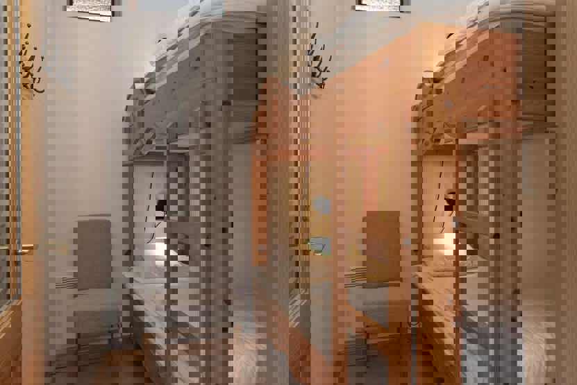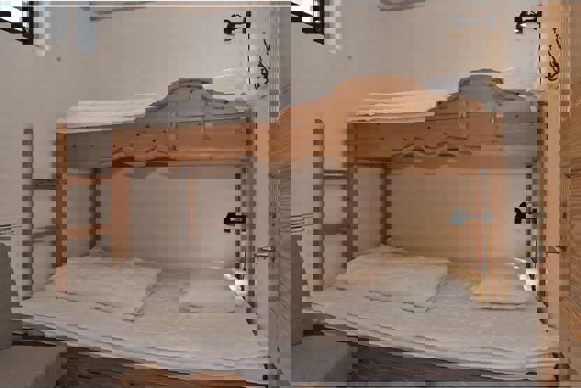 Soveværelse-1 = 1 køjeseng med 140 cm bred underkøje. Soveværelse-2 = 1 køjeseng.