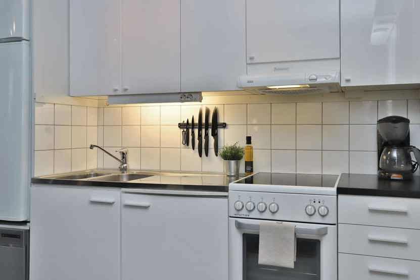 Køkkenet indeholder elkomfur med ovn, køleskab med fryser, opvaskemaskine, mikro.