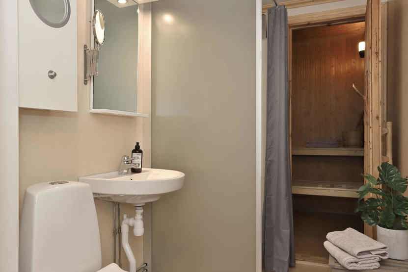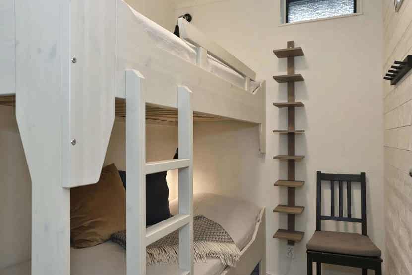 Soveværelse-1 = 1 køjeseng med 140 cm bred underkøje. Soveværelse-2 = 1 køjeseng.