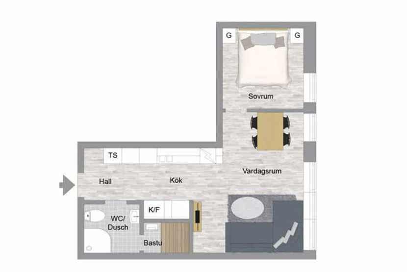 Alpinhuset ligger i Åre By. Lejlighed på 4 etage, 2+1 sengepladser, 40 kvm, alrum med køkkenafdeling, 1 soveværelse.