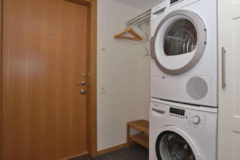 TV, tørretumbler, vaskemaskine, elevator findes i huset, skiopbevaring, adgang til elbilopladere med type 2 stik mod betaling.