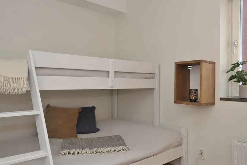 Soveværelse-1 = 1 køyeseng med 120 cm bred underkøye og 80 cm bred overkøye.