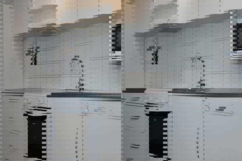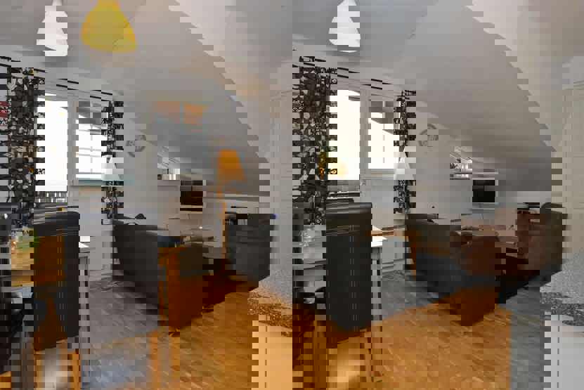 Stue med køkkenafdeling.
