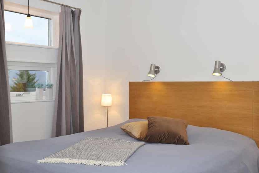 Soveværelse-1 = 1 dobbeltseng 180 cm bred. Soveværelse-2 = 1 køjeseng med 120 cm bred underkøje og 80 cm bred overkøje.
