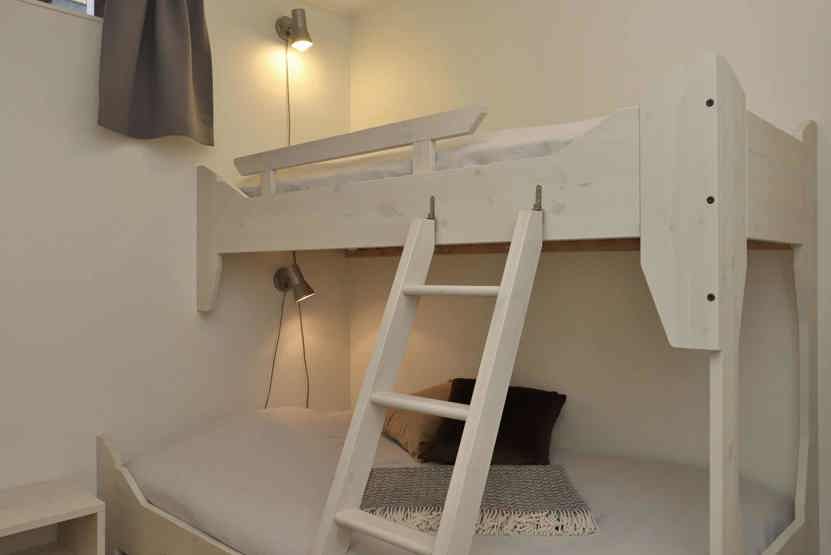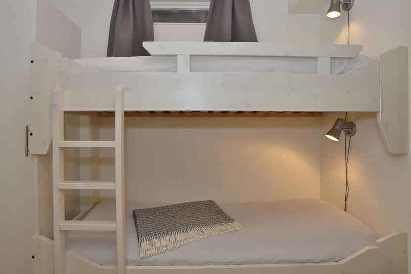 Soveværelse-1 = 1 dobbeltseng 180 cm bred. Soveværelse-2 = 1 køjeseng med 120 cm bred underkøje og 80 cm bred overkøje. Soveværelse-3 = 1 køjeseng.