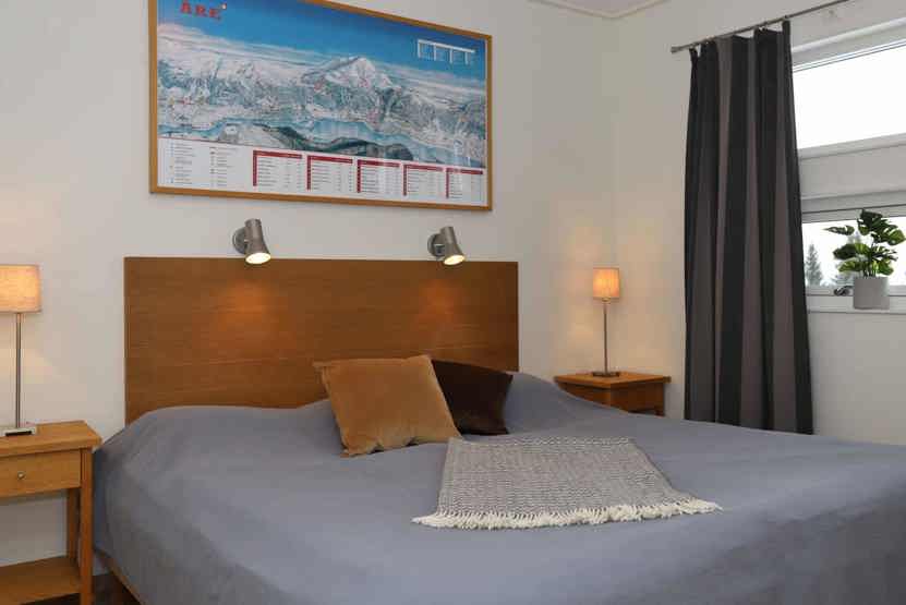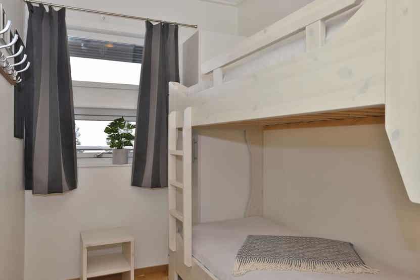 Soveværelse-1 = 1 dobbeltseng 180 cm bred. Soveværelse-2 = 1 køjeseng med 120 cm bred underkøje og 80 cm bred overkøje. Soveværelse-3 = 1 køjeseng hvor både over og underkøje er 80 cm bred.
