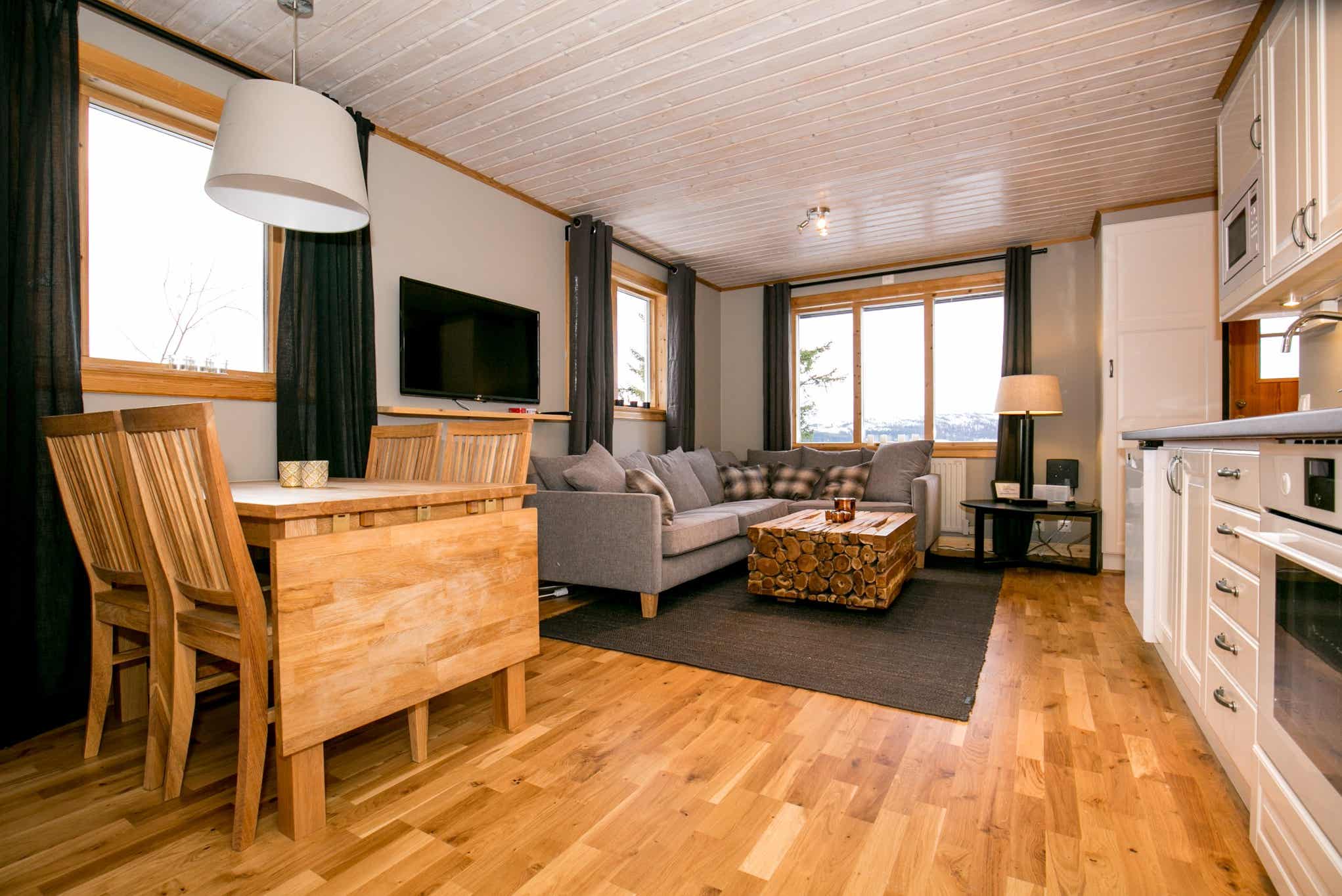 Her bor du højt oppe på fjeldet i hjemlige lejligheder med balkon. Det centrale Åres pister og store udbud af underholdning nås nemt via skisystemet eller skibussen.