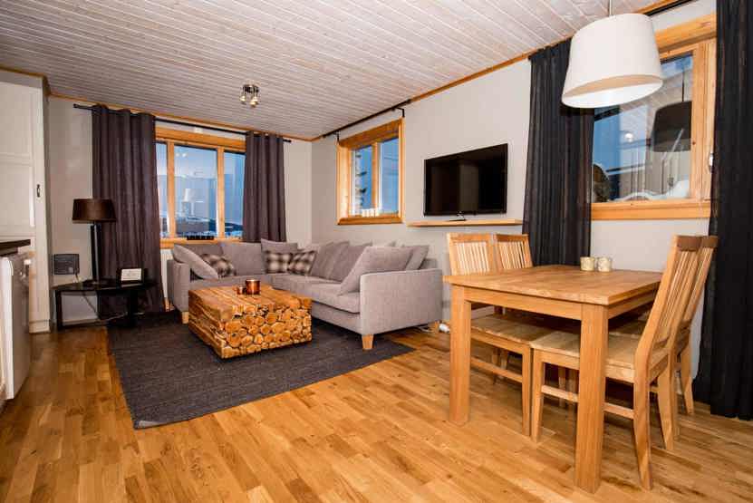 Stue med køkkenafdeling. TV, tørreskab, altan, skiopbevaring, gratis at parkere på anvist parkeringsplads, 1 plads med adgang til motorvarmerstik er tilgængelige.