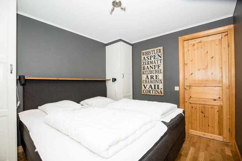 Soveværelse-1 = 1 dobbeltseng 180 cm bred. Soveværelse-2 = 1 køjeseng med 105 cm bred underkøje og 80 cm bred overkøje.