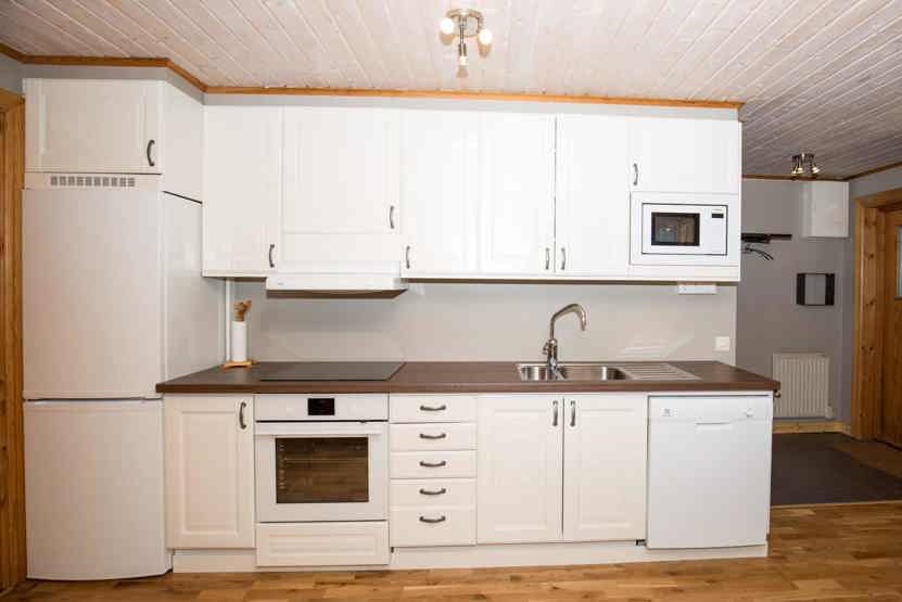 Køkkenet indeholder elkomfur med ovn, køleskab med fryser, opvaskemaskine, mikro.
